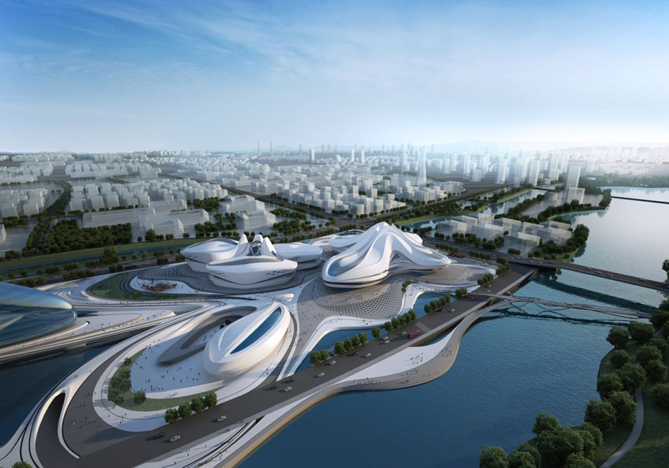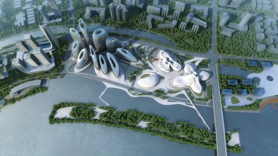 长沙国际文化中心位于湘江新区梅溪湖畔,造型犹如一朵美丽的芙蓉花,延续了扎哈的一贯风格。建筑根据功能分为东西两部分,西边的五个花瓣是5栋高层,作为综合开发区,东边是综合文化中心,含有剧院等功能。设计方案从汉斯·霍莱茵、沃尔夫·D·普瑞克斯、保罗·安德鲁和马可·卡萨蒙蒂等几位国际大师脱颖而出,获得了建筑师矶崎新、院士何镜堂和魏敦山等专家评委的认可,目前正在施工中。虽然扎哈女王未能等到文化中心建成的时候,但它就像一朵永恒而美丽的花朵,永远地留在了长沙人民的心中。