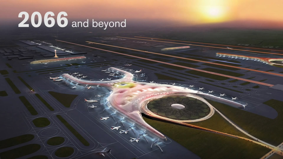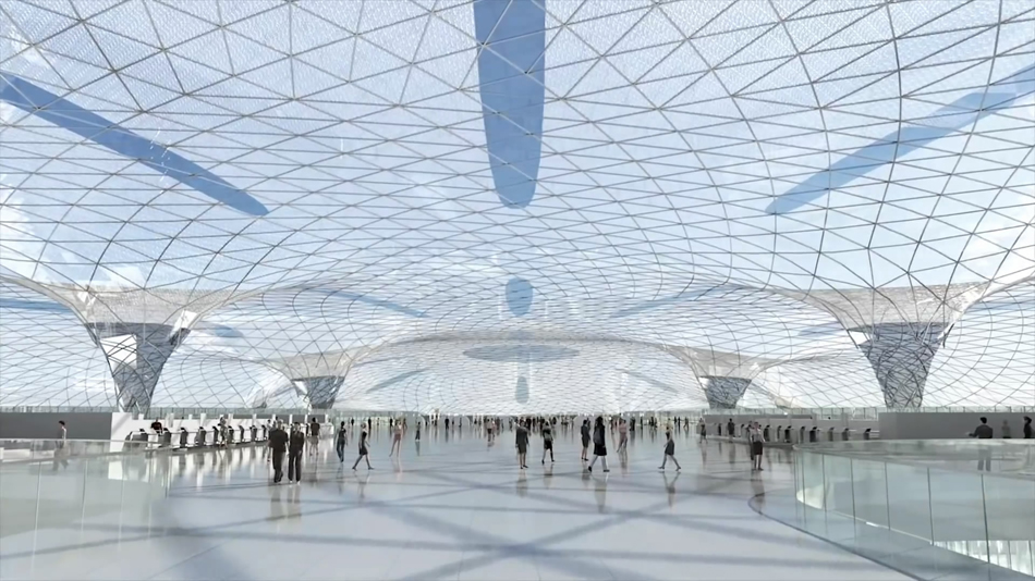 机场跨度超过100米, 内部最大跨度170米,是传统机场跨度的三倍。主设计师norman foster 说道:“项目将首次突破原航站楼模型,并以大跨度、单外壳的全新设计理念领先于时代。该理念将使航站楼在效能和灵活性方面登上新台阶,同时其造型流光溢彩,引人瞩目。整个设计将带给乘客非比寻常的体验。“