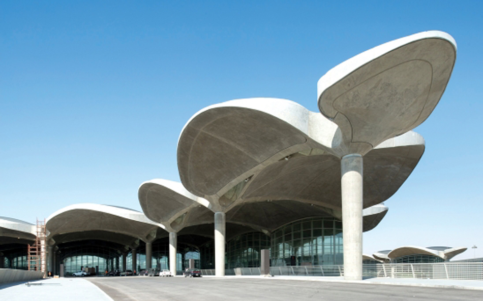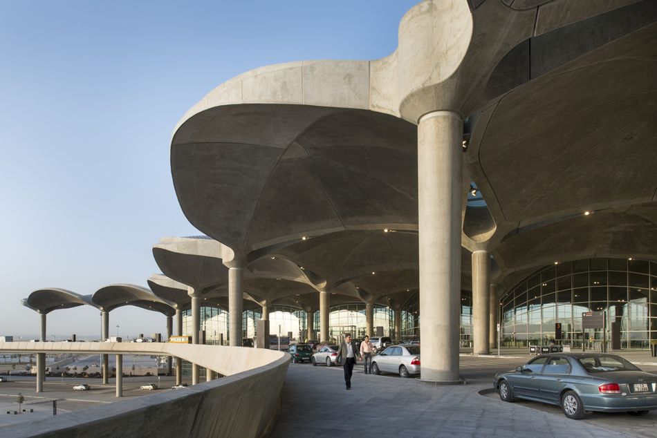 考虑到安曼地区夏季昼夜温差极大的气候特征,机场内部采用蓄热能力很强的混凝土材料,形成了一系列弧度较小的混凝土穹顶。每个树叶的纹理和几何模式,都与伊斯兰传统形式相呼应,体现出自然、文化和技术的完美融合。