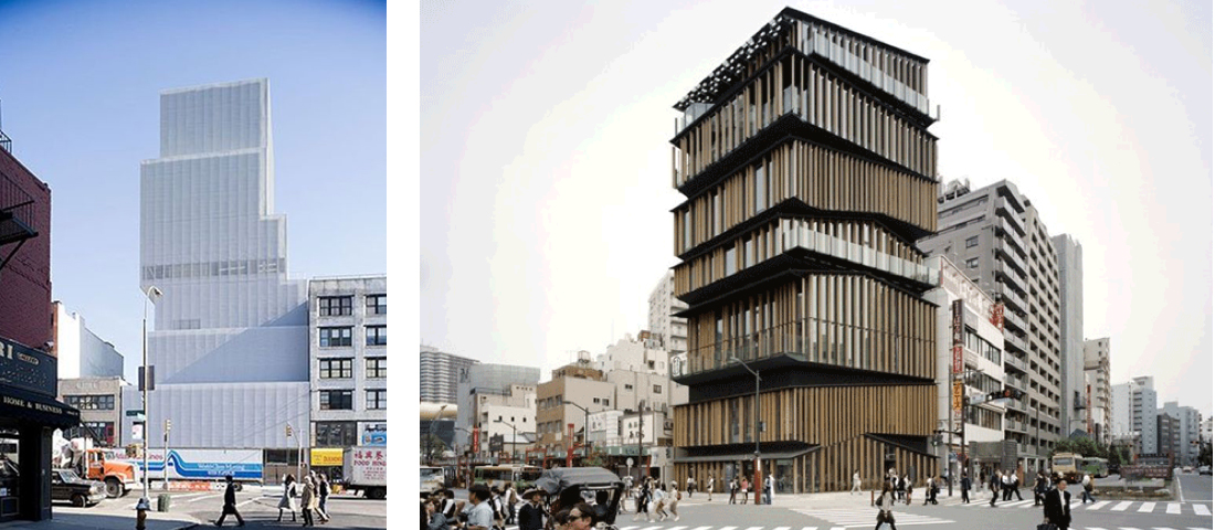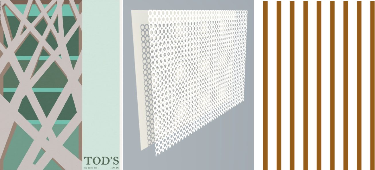 作业:用以上两种不同的方法,为同一个模型做立面,要求是只有立面的空壳子模型。备选案例:完成toyo ito的tod’s 整体模型、SANAA纽约新当代艺术博物馆、隈研吾浅草观光公社,也可以自己想一个案例。