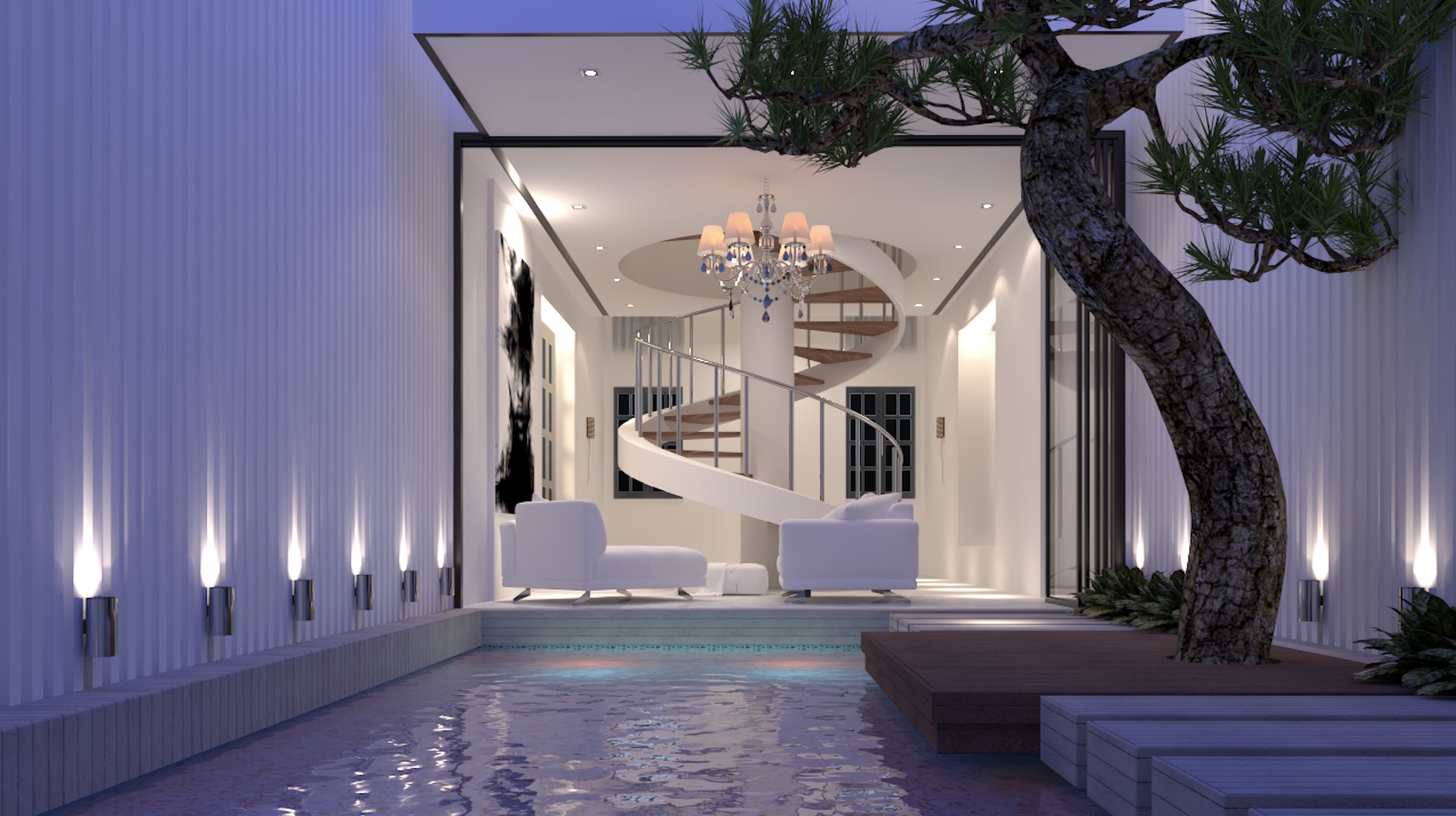 国外VRay3.4 for sketchup2017泳池渲染的视频,