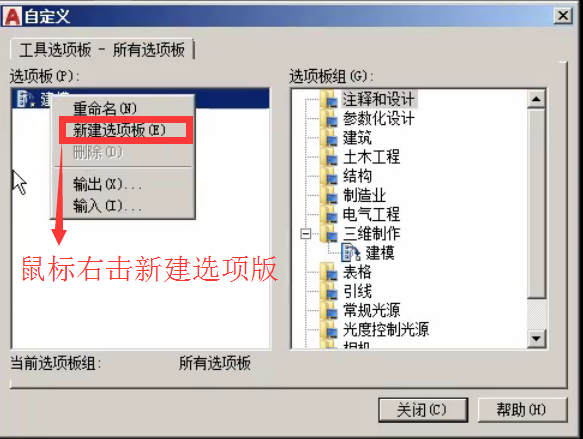右击鼠标选择新建选项板,这里我命名为“块文件”