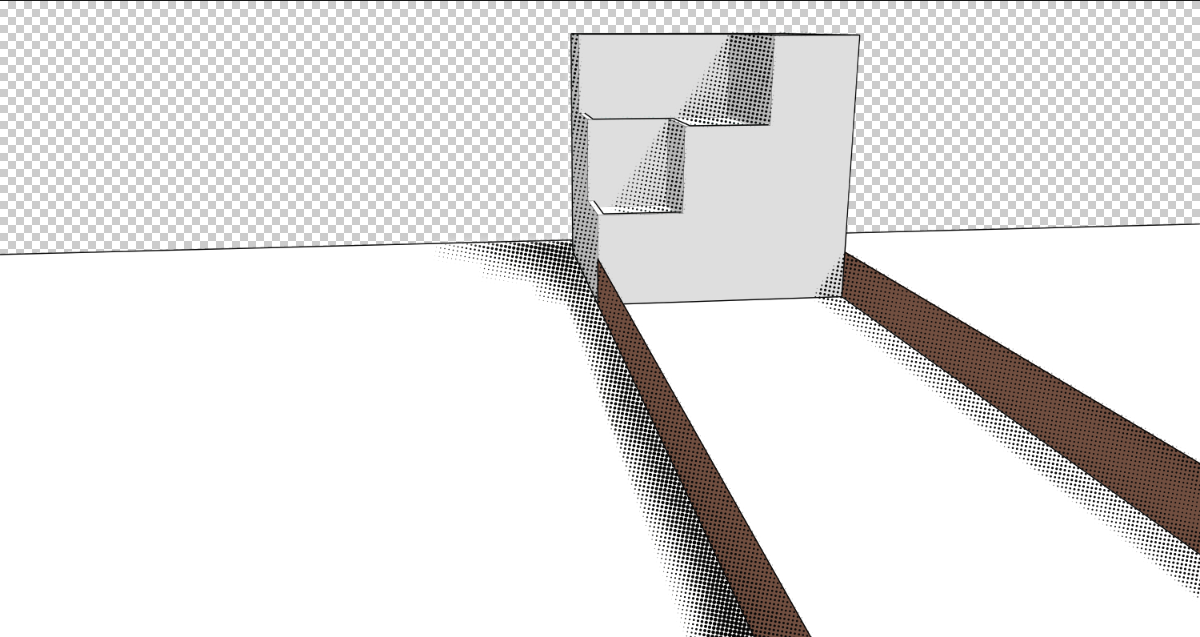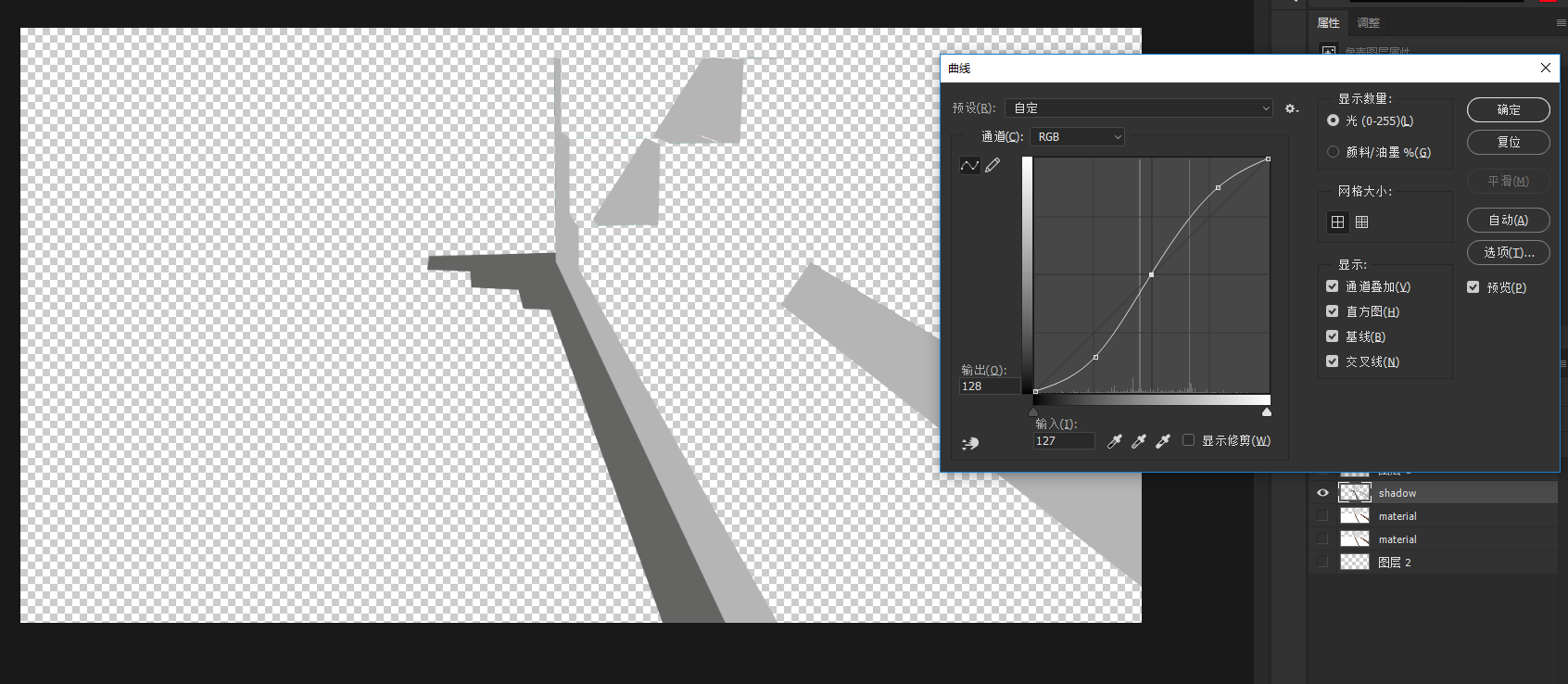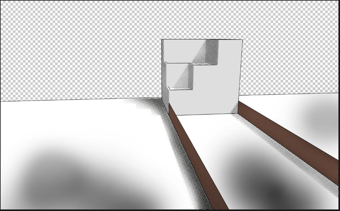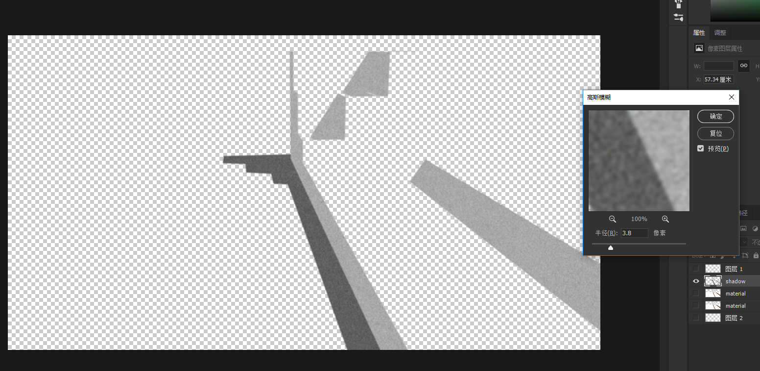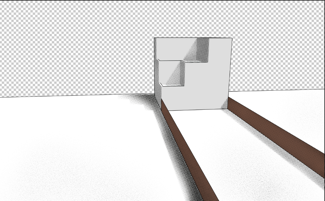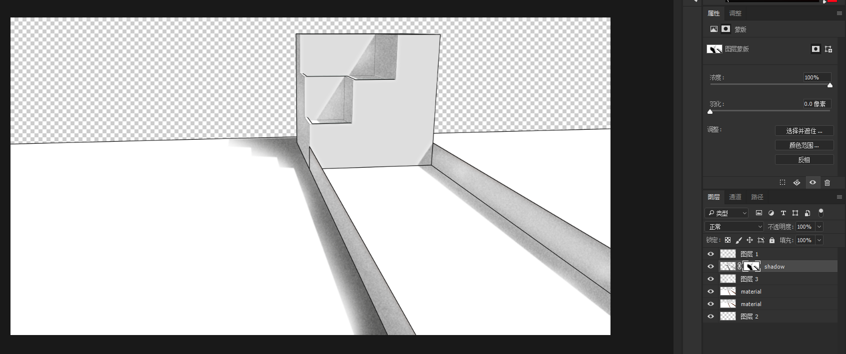 2、将这些图层都栅格化,将阴影图层中的地板和建筑表皮删掉,只留下阴影。