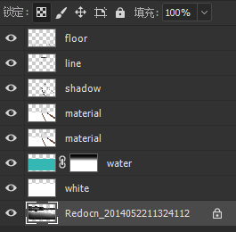 5、接下来在最底下新建一层填充为蓝色的水颜色,结合蒙版做一个从远倒近的渐变,在这个图层底下也新建一层填充为白色,回到水体图层调整透明度。