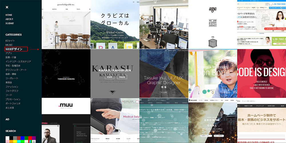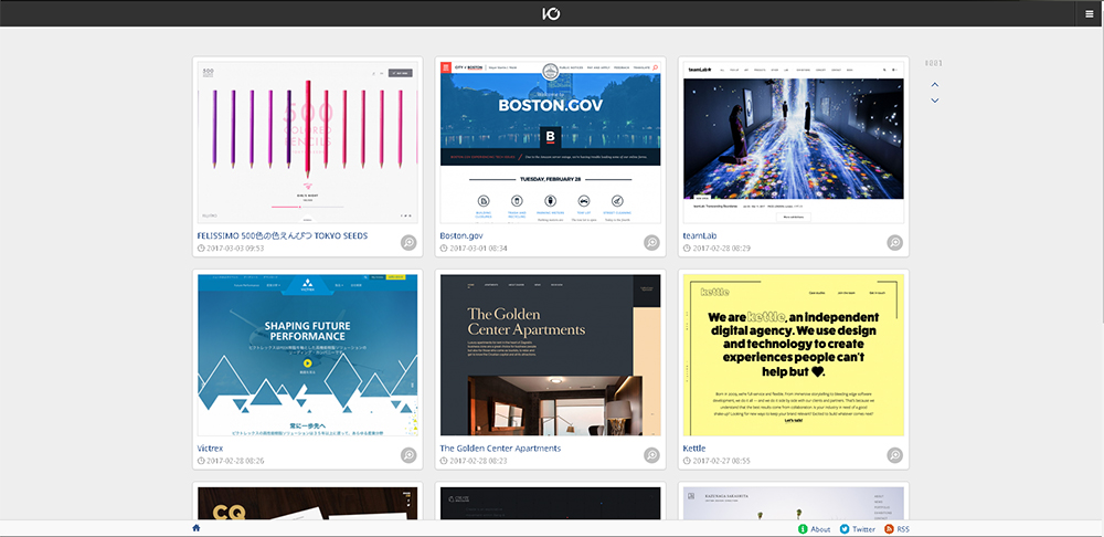 此站,也是包罗万象的感觉,同io3000站一样。值得一提的是日本网站的设计风格很多已经使用新的网页设计趋势,如视差滚动、全屏背景、全屏视频等等,很少使用Flash,特别注重网页的配色、版式和交互设计,整体网页布局新颖,不少网站使用了可爱的漫画式手绘风格。