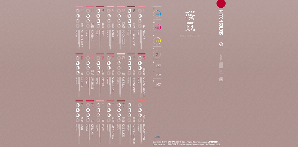 这是一个颜色网站,日本的传统色,超级多颜色,而且超炫酷!