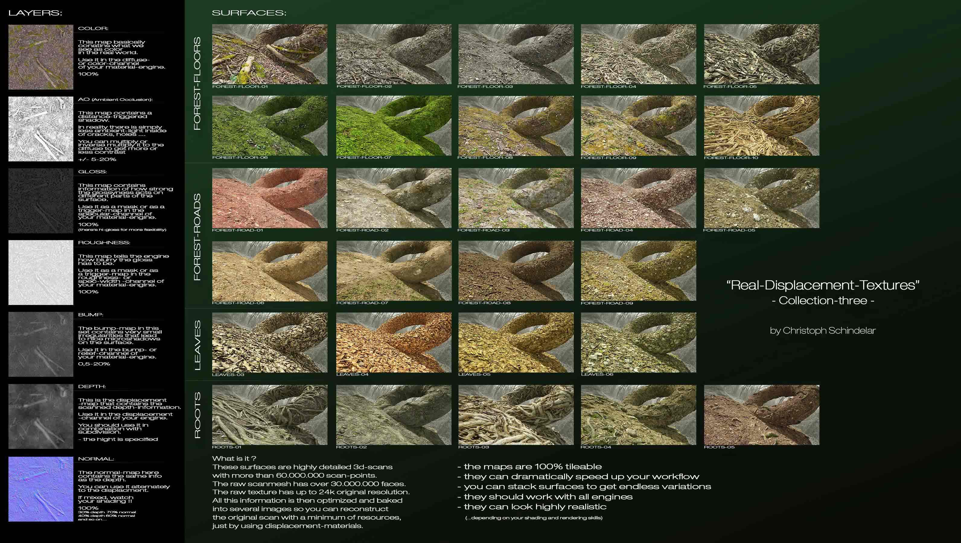 对于Sketchup使用者来说,非常头痛资源的问题,在建筑表现后期无法满足地面材质质感和凹凸表达。Real displacement Texure by Christoph Schindelar是一套3D扫描得到的无缝贴图,拥有准确的漫反射,凹凸和置换信息,在3DMax当中使用会有更加真实的效果,在Sketchup中虽然也可以实现,但效果没有素材预览那样出色。小编为测试贴图质量,渲染了几个相同的场景,使用了玻璃和镜面材质,感觉还是不错的。通常的使用办法:在漫反射层链接Color、凹凸层链接Normal、在置换层链接:Depth(可以根据机器的配置选择不同尺寸的贴图)。