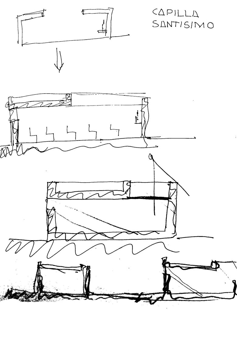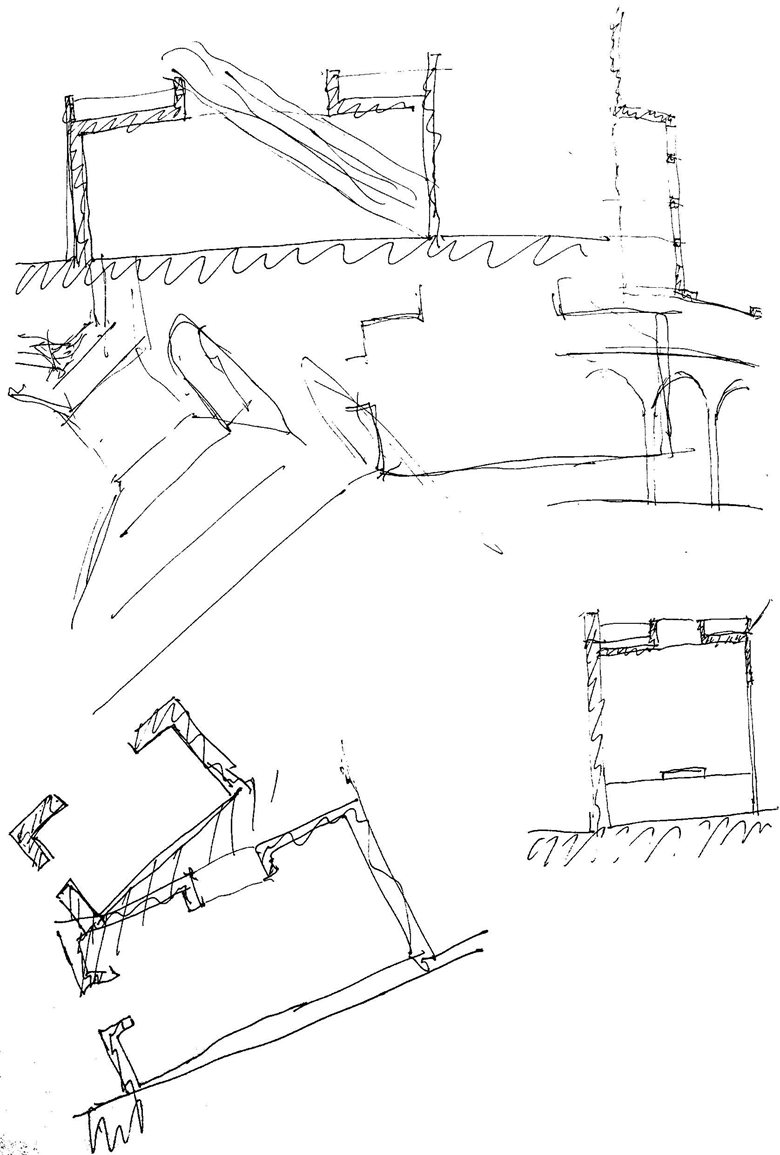 草图是创作前期对方案的构思,是表达作者创作的一个大概的想法。保罗·波尔库纳米米的创作草稿分析了教堂的一个大概的空间透视和光照,预想了光照的路径。因为光对教徒来说是非常圣神的,如日本建筑大师安藤忠雄的成名代表作《光之教堂》因其在教堂一面墙上开了一个十字形的洞而营造了特殊的光影效果,令信徒们产生接近天主的错觉而名垂青史。