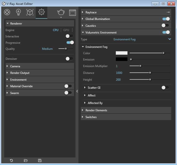 在3.6里将我们的环境雾(大气雾效)和丁达尔光线功能放在了一起,都放在了参数设置的右边卷展栏,当我们吧【Type】(类型)切换为【Environment Fog】时即是我们的丁达尔功能。