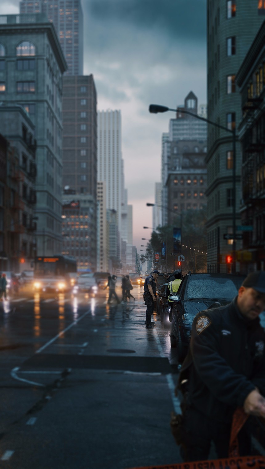 同时,作者也想营造一种特殊的气氛,这样可以让作品更具时代性和戏剧性,并且以纽约不得不面对的恐怖袭击为题,也正因此将此系列作品取名为《第五大道》。这张照片的故事讲述的是一个记者在拍摄犯罪现场的照片时被警察带走。