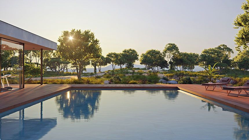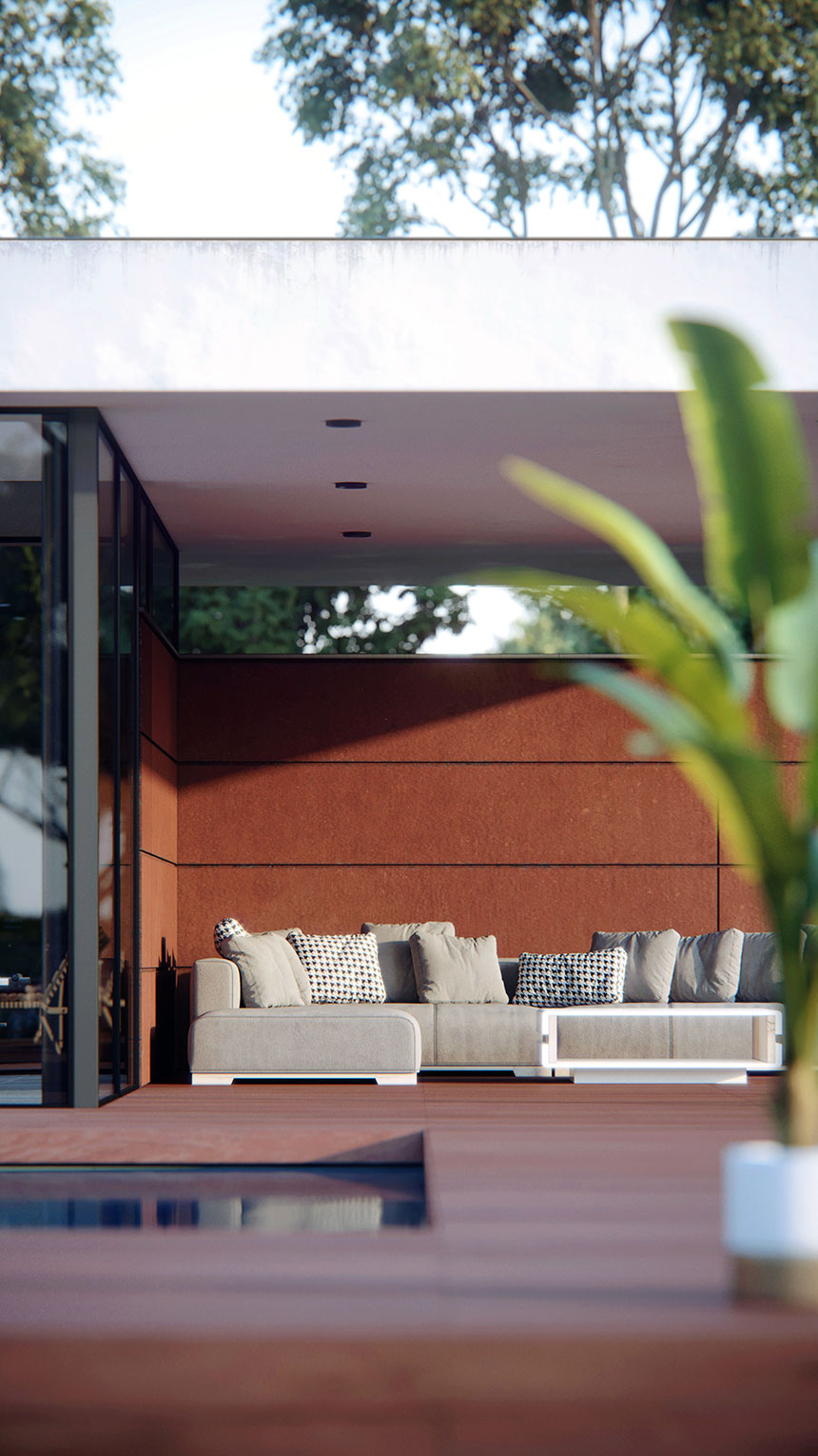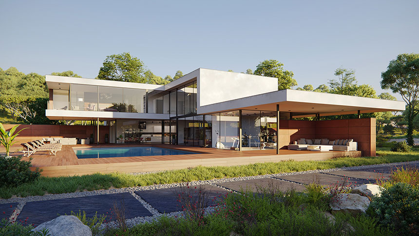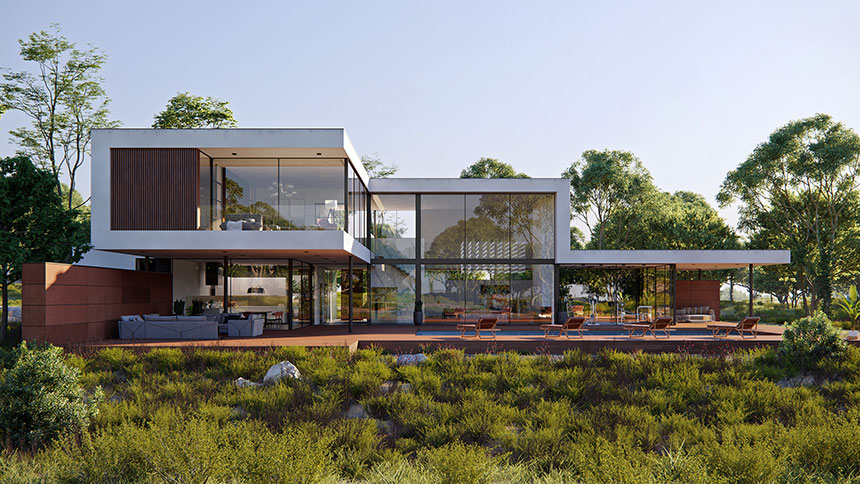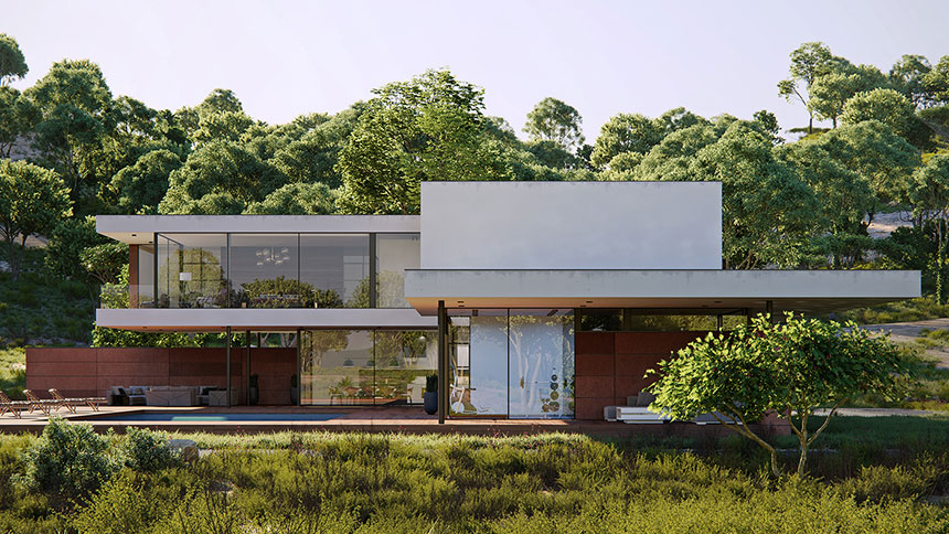《阳光谷》中的建筑通过严格的线条和朴素的设计完美地融入了自然环境,简约,粗狂,宽敞,充满光线和空气,为简约大气的建筑项目进行可视化表现总是充满乐趣。