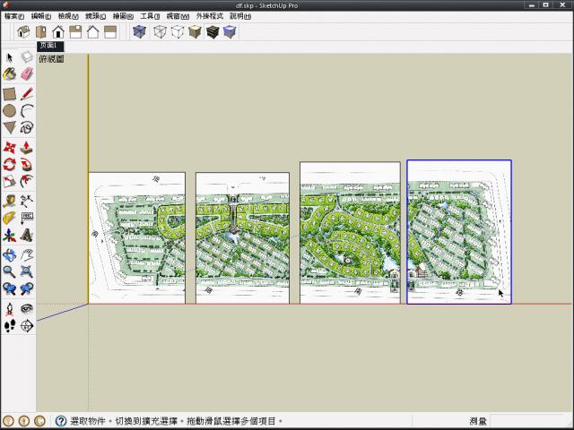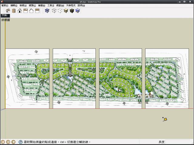 第三阶段,将分块底图导入SU并合并为一张底图。将以上四个块图拖入SU内,分别炸开并独立成组。