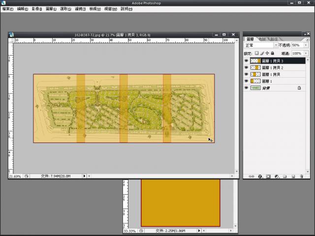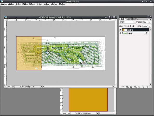 将此图框直接拖到刚才的底图上形成新的图层,将此图层透明度调整到50%左右。