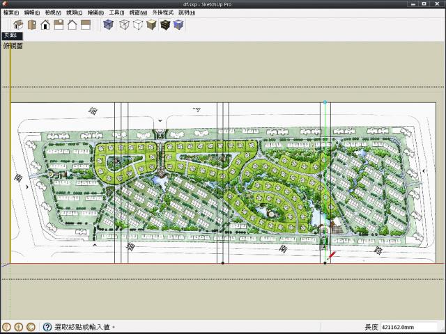 某地块规划方案的平面手绘彩图经过扫描之后得到图片的分辨率为200像素/英寸,4500像素×1700像素。现需将此图片导入SU作为建模底图。