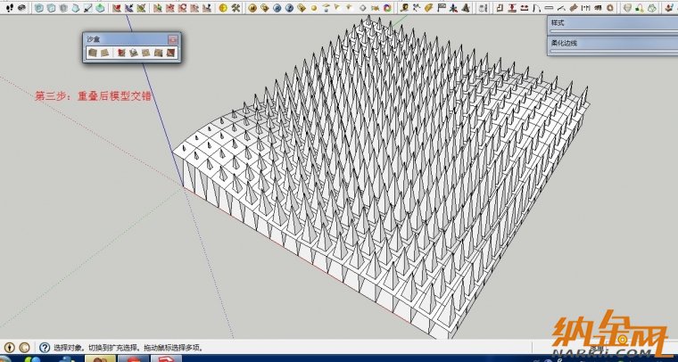 利用SketchUp无插件曲面渐变的方法制作建筑表皮的学习过程,希望爱好SketchUp的朋友可以借鉴一下。3d教程是初学者尽快学会技巧的好板块,希望大家踊跃加入,尽快熟悉,运用这些技巧教程。请看下面的实例: