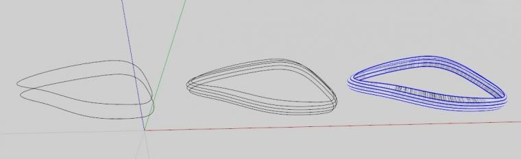 然后复制轮廓,用沙盒投影弄个平的轮廓,再将平的轮廓复制几个,调整缩放,并放样。