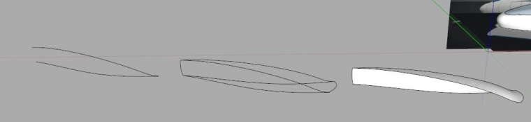接下来制作门,利用模型交错在曲面上得到线,向里旋转复制,得到门的轮廓,放样,装回去。