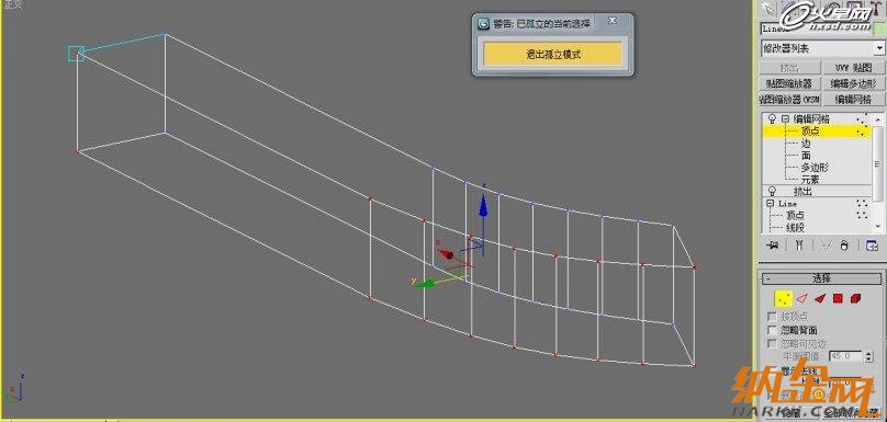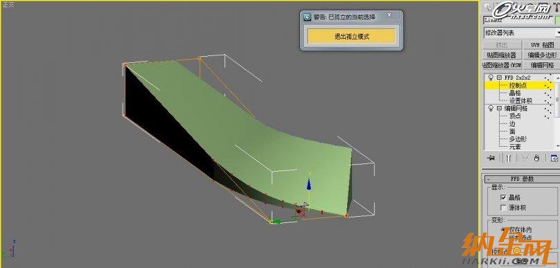 3,加入修改器编辑网格(也可塌陷),反选(手动)另外一边的点,加入FFD修改器,选择晶格点移动到坡道最低点。