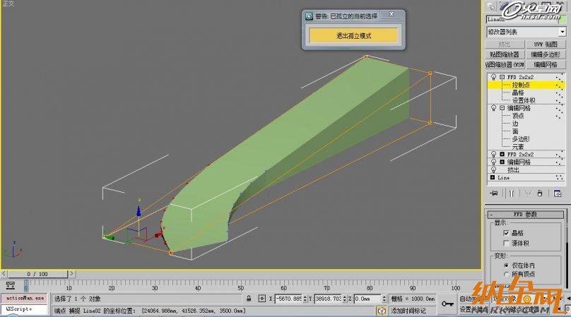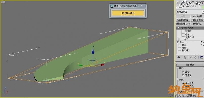 2.加入修改器FFD,选择晶格点,移动到坡道最低点!
