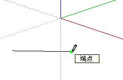 在刚在绘制的线终点上放置指标,会显示[端点]的选取提示,[选取提示]可以在素描(SketchUp)作业上帮助使用者辨识模型几何特征或参考点,是SketchUp所显示作图上的提示。