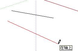 在作图窗口第一条线前面附近再度点取,这次画一条与红色轴平行的线,抓取着起点,平行红色轴移动指标,请先不要点取线的终点。