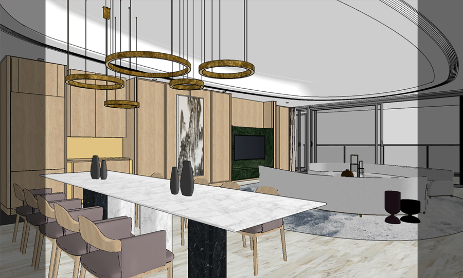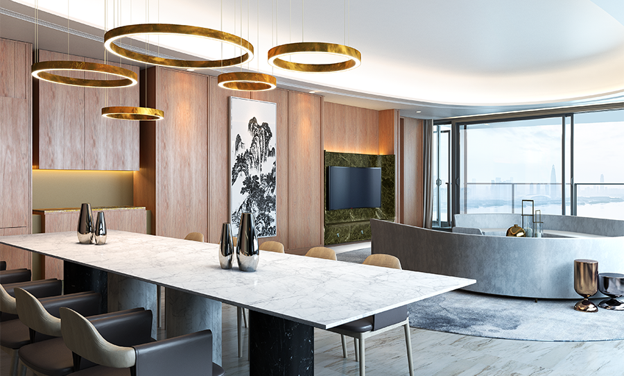 家装/私宅表现最常见为客餐厅,这里以深圳湾一号为例